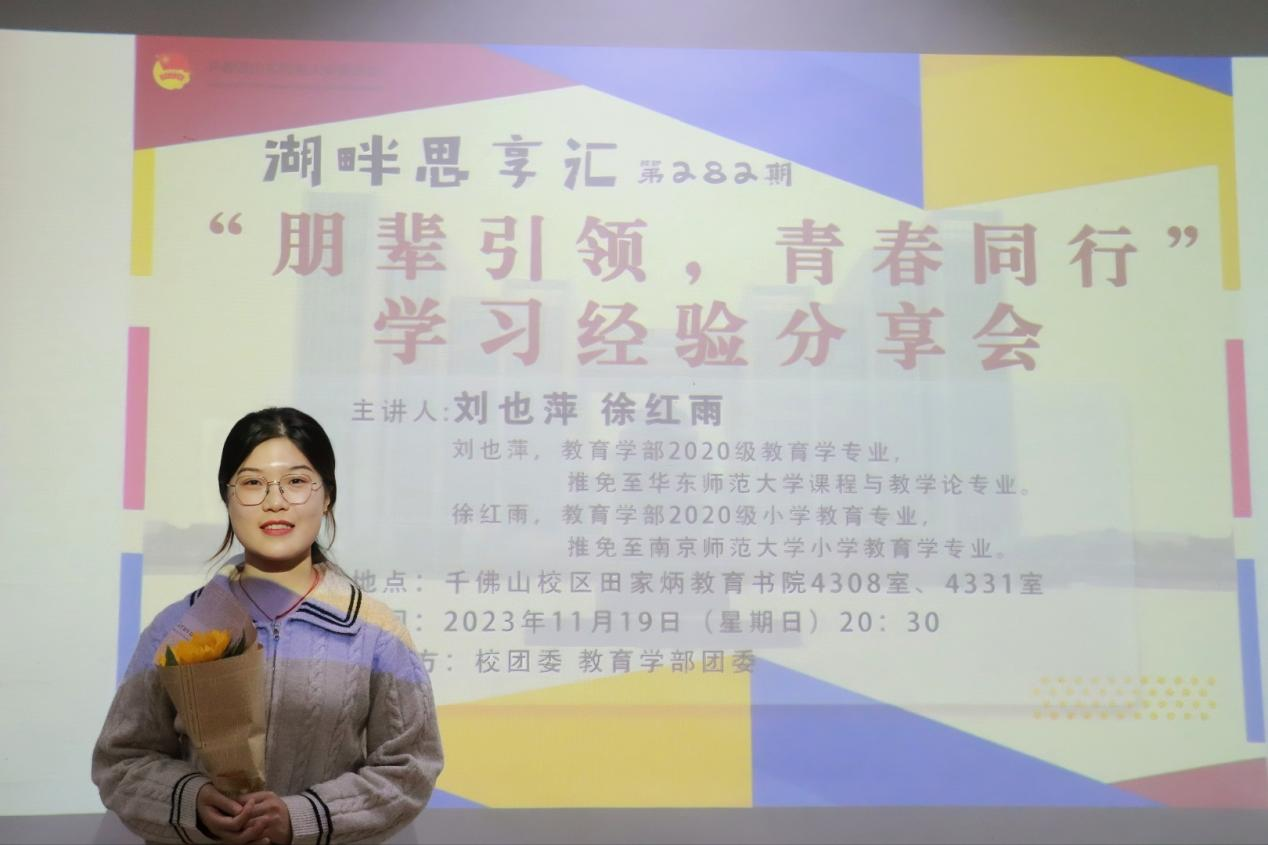 刘也萍,中共党员,教育学部2020级教育学专业,推免至华东师范大学课程与教学论专业。